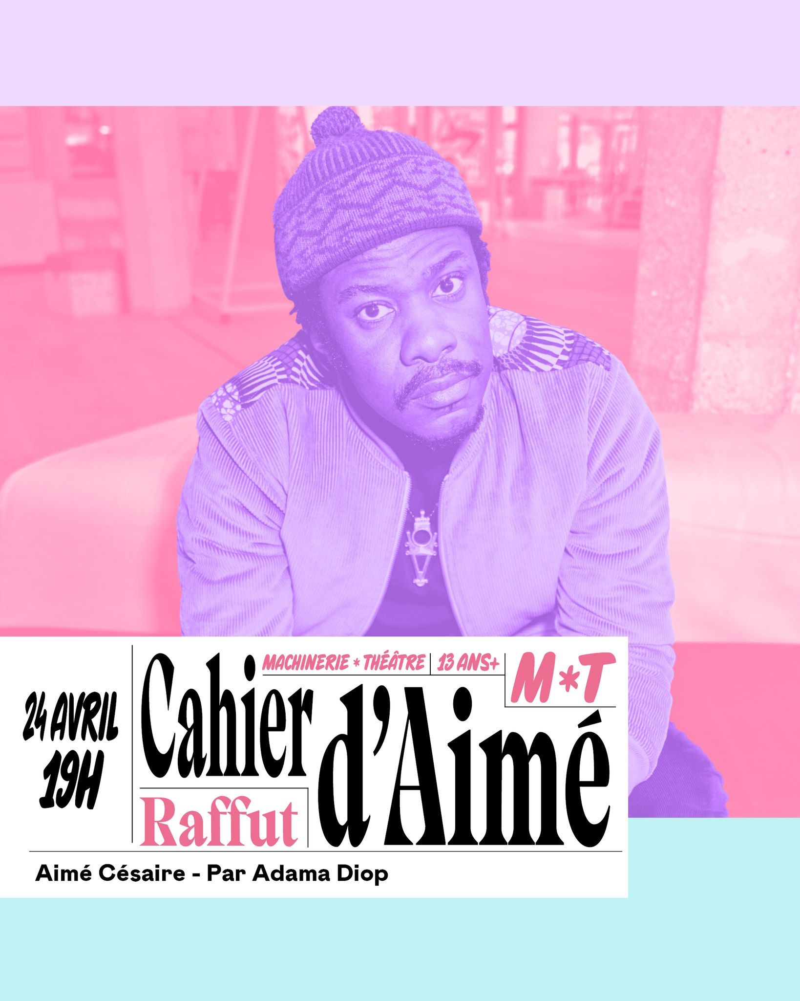 Cahier d’Aimé est une oeuvre poétique où se mêlent révolte, quête identitaire et réflexions sur la condition coloniale. Le metteur en scène propose un voyage à travers la langue charnue de Césaire, une immersion profonde dans ce grand poème, dont les sonorités, le rythme et la puissance ne vous laisseront pas indemnes.